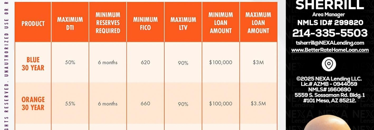 30 YEARS OPTIONS - Tristan Sherrill -Branch ManagerHi, my name is Tristan Sherrill. I’m a Loan Officer with NEXA Lending LLC., offering personalized mortgage solutions, fast customized quotes, great rates and service with integrity.