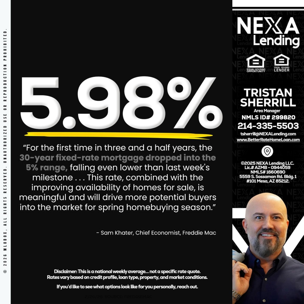 Hi, my name is Tristan Sherrill. I’m a Loan Officer with NEXA Lending LLC., offering personalized mortgage solutions, fast customized quotes, great rates and service with integrity.