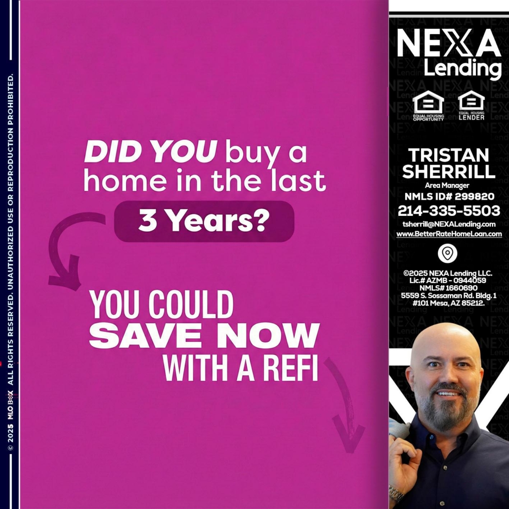 did you - Tristan Sherrill -Branch ManagerHi, my name is Tristan Sherrill. I’m a Loan Officer with NEXA Lending LLC., offering personalized mortgage solutions, fast customized quotes, great rates and service with integrity.