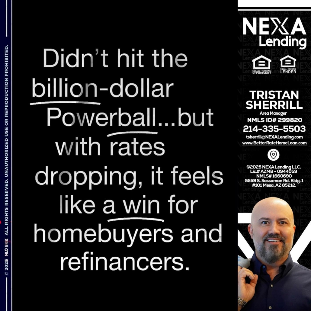 Hi, my name is Tristan Sherrill. I’m a Loan Officer with NEXA Lending LLC., offering personalized mortgage solutions, fast customized quotes, great rates and service with integrity.
