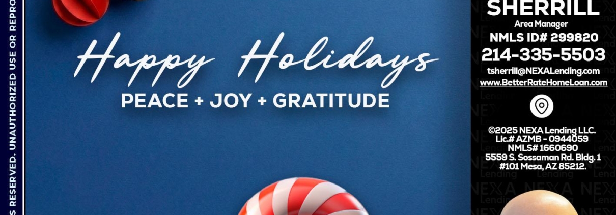 HAPPY HOLIDAYS - Tristan Sherrill -Branch ManagerHi, my name is Tristan Sherrill. I’m a Loan Officer with NEXA Lending LLC., offering personalized mortgage solutions, fast customized quotes, great rates and service with integrity.