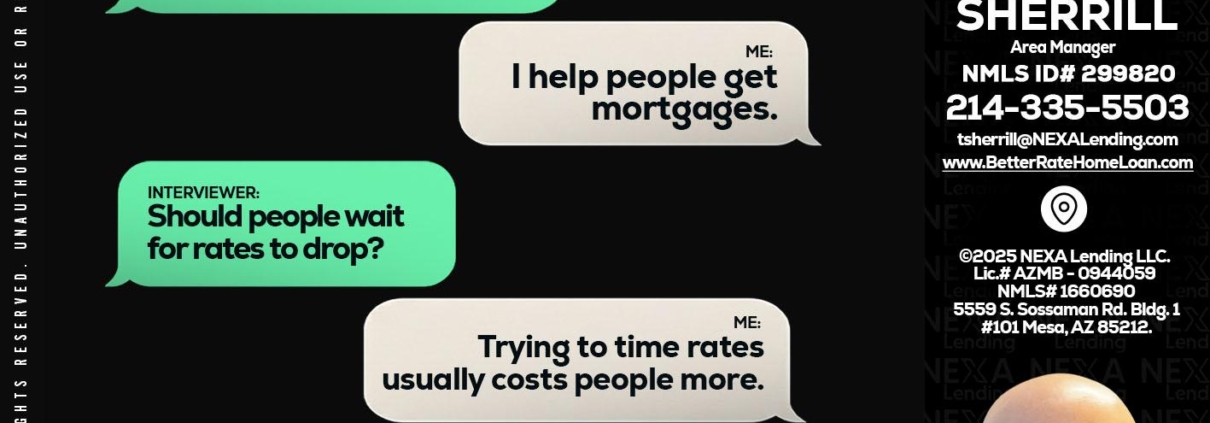 Hi, my name is Tristan Sherrill. I’m a Loan Officer with NEXA Lending LLC., offering personalized mortgage solutions, fast customized quotes, great rates and service with integrity.
