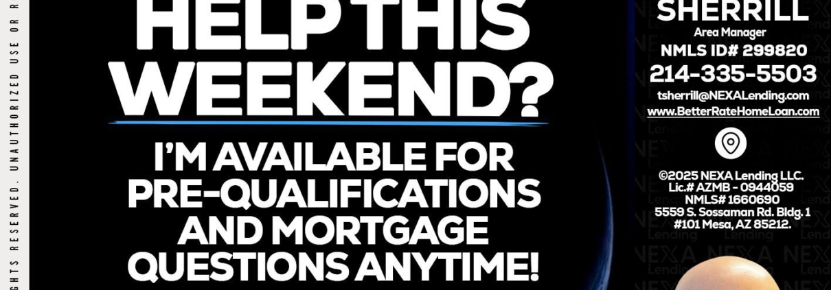 Hi, my name is Tristan Sherrill. I’m a Loan Officer with NEXA Lending LLC., offering personalized mortgage solutions, fast customized quotes, great rates and service with integrity.